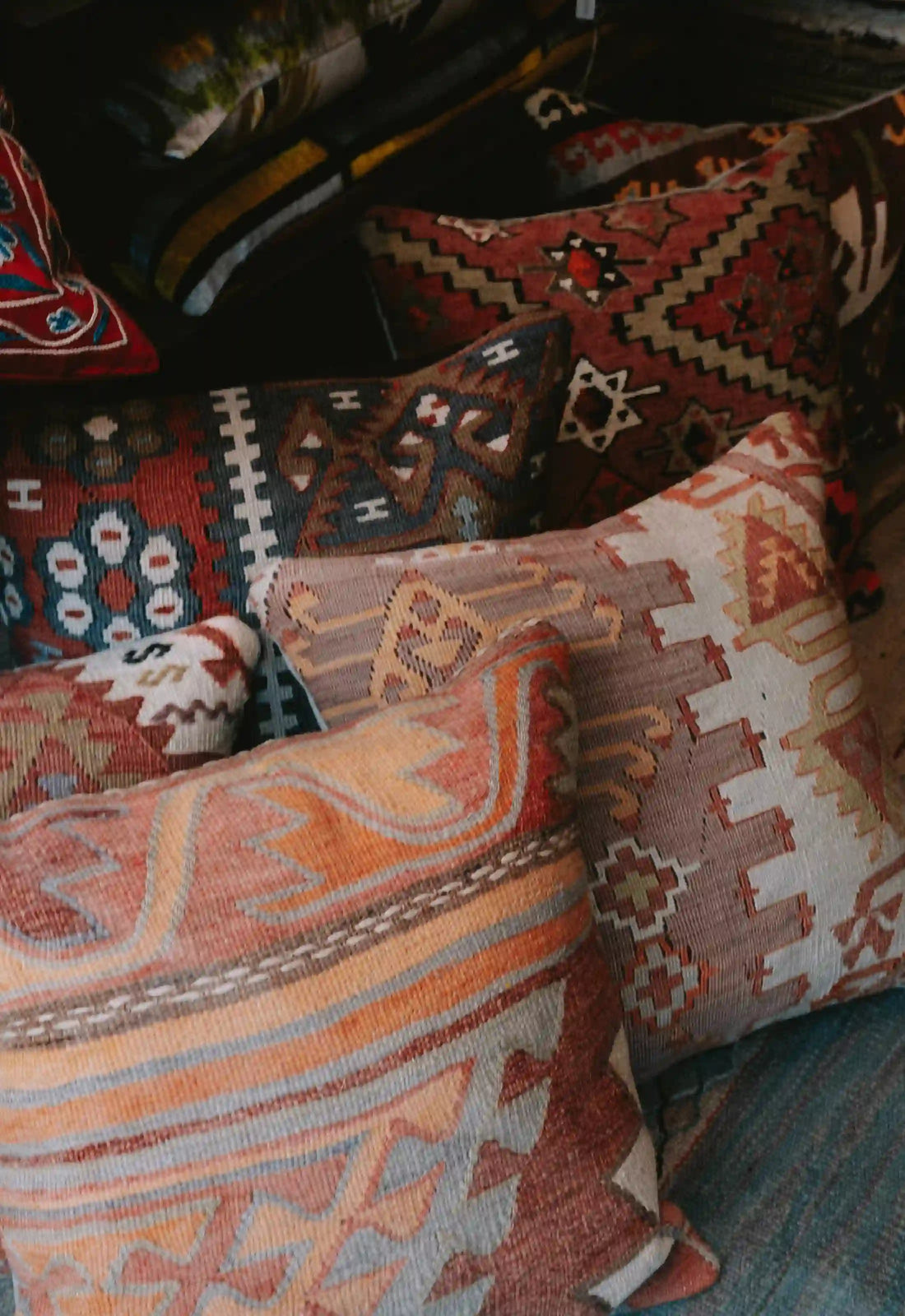 Discover our curated selection of vintage rugs, lamps, and pillows, each with its own history and charm.